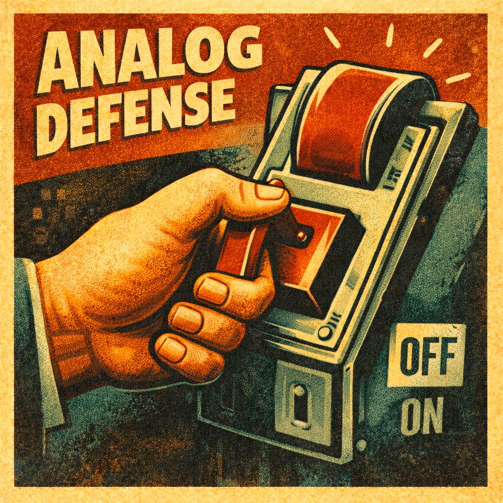 Many companies are already returning to tape backups to preserve data in a format that cybercriminals and spies cannot access digitally. Manual overrides, air gaps, and human checkpoints will return to essential systems. Some things are safest when they cannot be reached remotely. | ![]() Analog Defense |