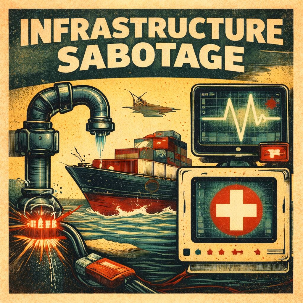 One of the major things that keeps me up at night is fear of a catastrophic power grid critical infrastructure attack. But attacks in the new year may be more nefarious. Instead of blackouts or explosions, systems will simply underperform: water pressure drops, hospital systems lag, shipping delays compound. Everything will still “work,” just badly enough to erode confidence. Attribution will be nearly impossible, and that will be by design. | ![]() Sabotage |